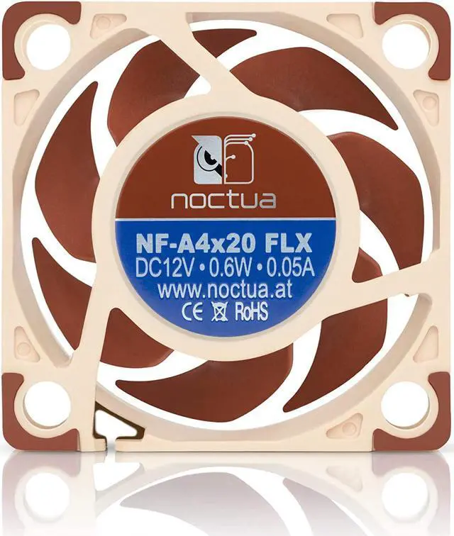 Featuring advanced aerodynamic design measures such as Flow Acceleration Channels and Noctuas AAO frame, the NF-A4x20 is a highly optimised, premium-quality quiet fan in size 40x20mm. The FLX version provides 5000/4400/3700rpm speed settings via the supplied Low-Noise Adaptors and includes the OmniJoin Adaptor Set for easy connection to proprietary fan headers. Its superb running smoothness, reference-class SSO2 bearing and Noctuas trusted premium quality make it an elite choice for the highest demands. 40x20mm size Compared to Noctuas award-winning NF-A4x10, the NF-A4x20 is twice as thick, which allows for increased static pressure performance and makes the NF-A4x20 ideal for demanding applications with high flow resistance.