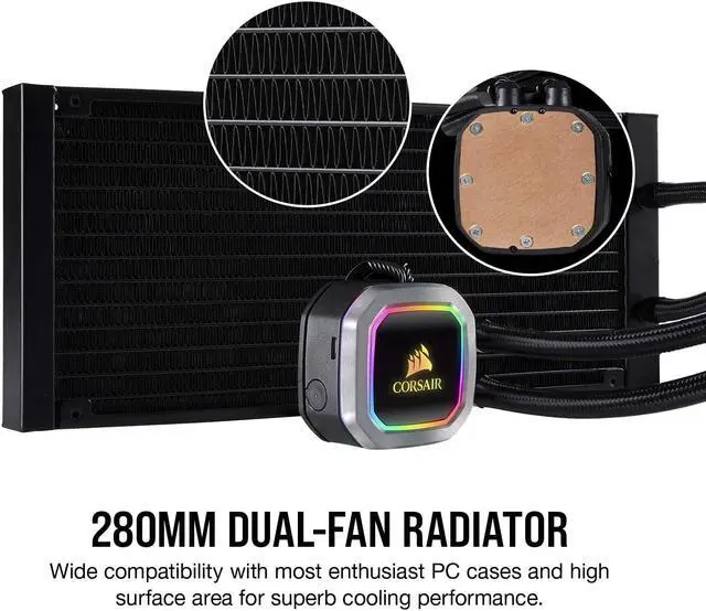 Experience incredible CORSAIR Hydro Series cooling performance, with each fan running from 400 to 2,000 RPM while in operation, and a thermally optimized cold plate and low-noise pump design for high performance, quiet cooling.