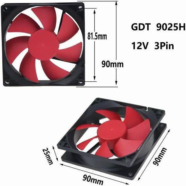12V 9cm 90mm 90x90x25mm 3pin Brushless fan Cooling Fan Red Leaf