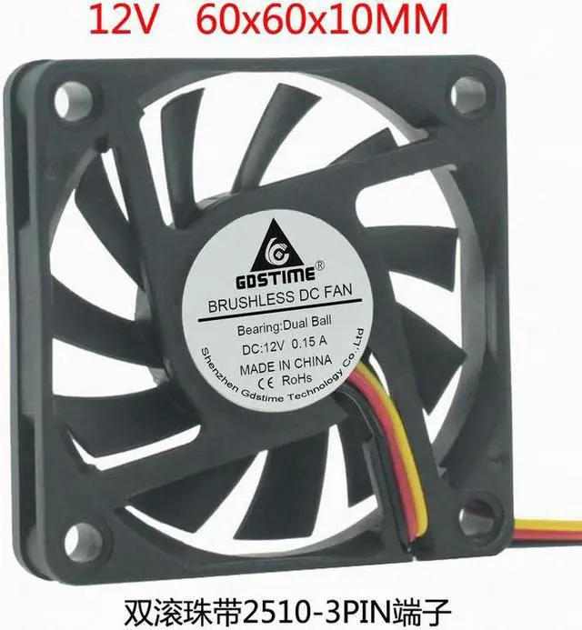 Ball Bearing 3pin 12V 60x60x10mm Brushless fan Cooling Fan