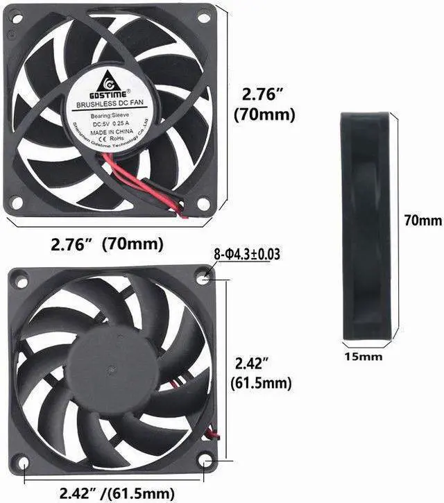 5V 7cm 70mm 70x70x15mm 2pin Brushless fan Cooling Cooler Fan 7015S Quiet