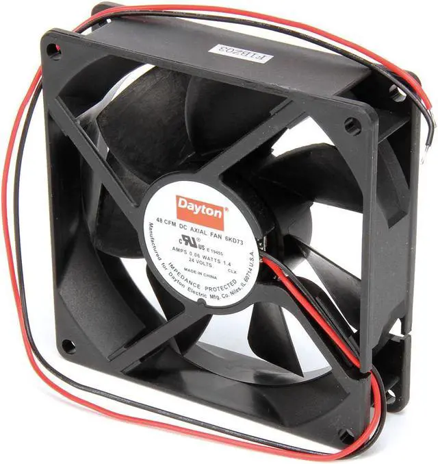 Standard Square Axial Fan, Fan Shape Square, Mounting Eye O.C. 3 1/4 in, Height 3 5/8 in, Depth 1 in, Width 3 5/8 in, CFM @ 0.000-In. SP 45, Watts 1.7, Voltage 24V DC, - Hz, 0.07 Amps, Electrical Connection - Fans Lead Wires, Sound Level 33, IP Rating IP20, Mounting Position Vertical or Horizontal, Bearing Type Ball, 2700 RPM, Motor Design Brushless DC, Motor Insulation Class A, Thermal Protection Impedance, Max. Ambient Temp. 158 Degrees F, Blade Material Polybutylene Terephthalate