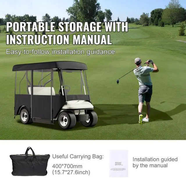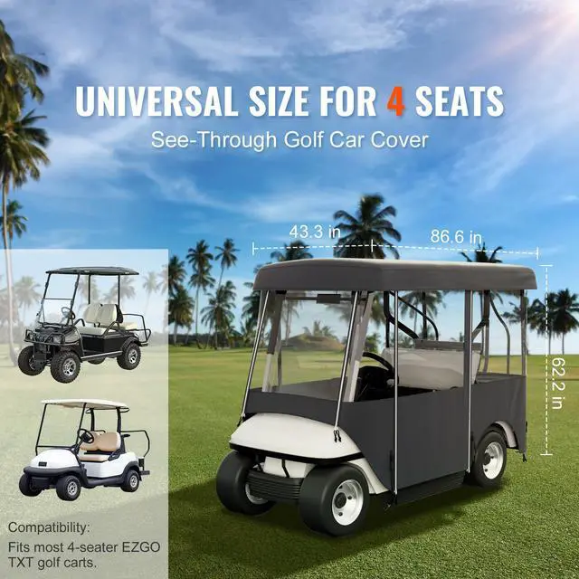 Golf Cart Enclosure 86'', 4-Person Golf Cart Cover, 4-Sided Fairway Deluxe, 300D Waterproof Driving Enclosure with Transparent Windows, Fit for 4-Seat EZGO, Club Car, Yamaha Carts
