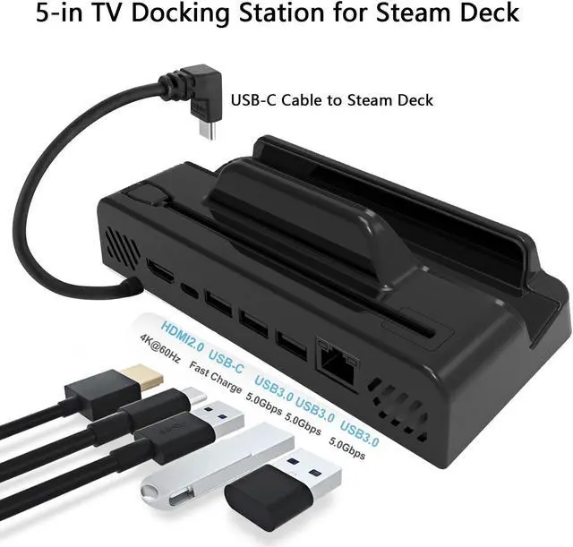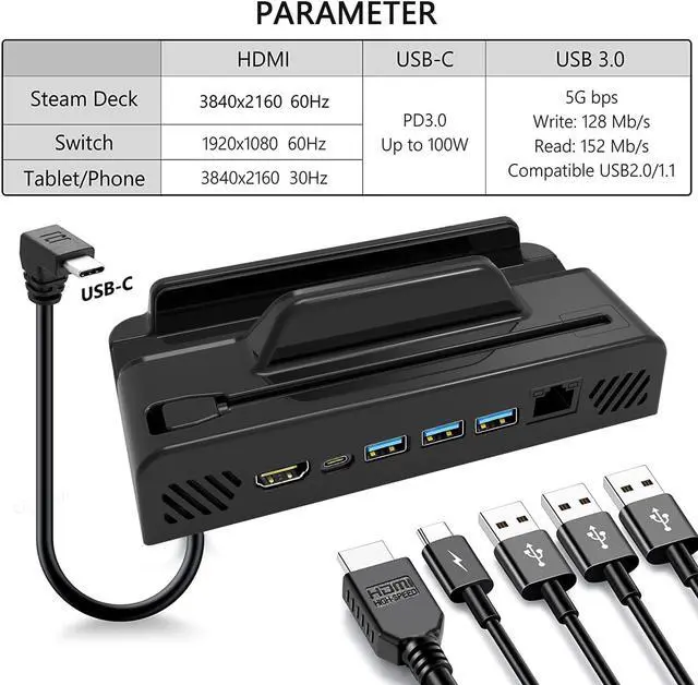 Model JY-75 Video/audio port USB 3.0 +HDMI 2.0 Network port RJ45 1000M Applicable product Steam Deck Connection mode TPC /USB Product size 80*150*50 mm The product weight is 105g