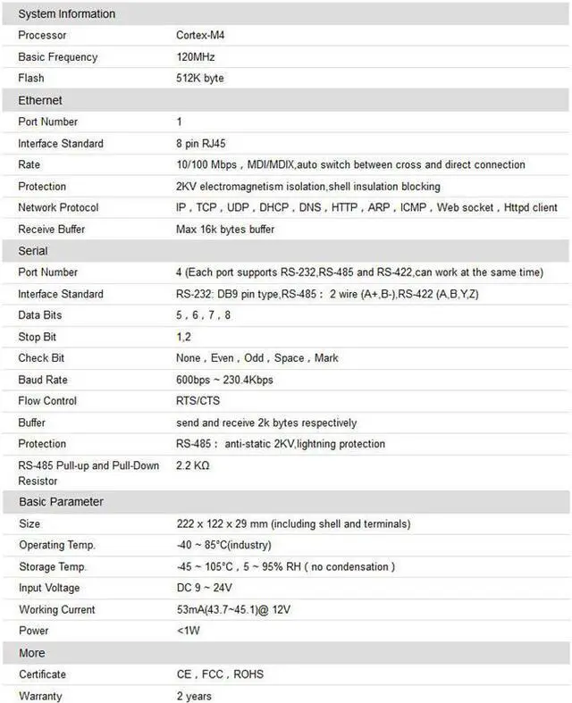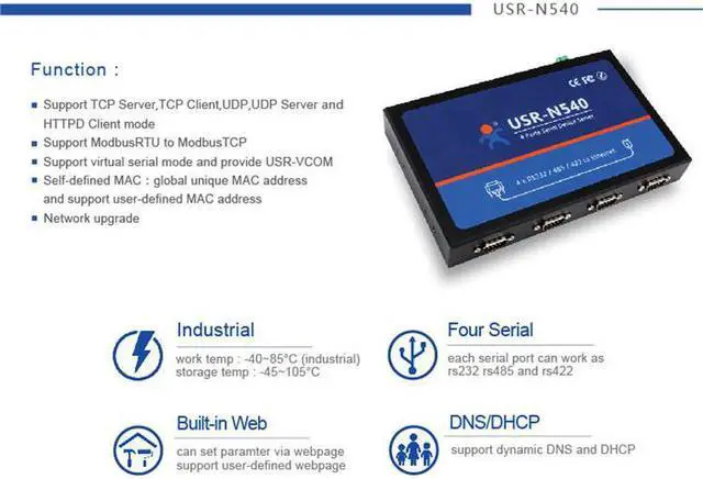 USR-N540 RS232 to Ethernet RS485 to RJ45 RS422 to TCP IP Converter