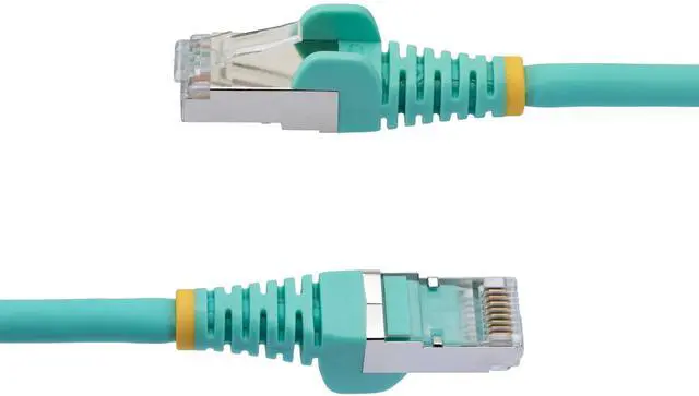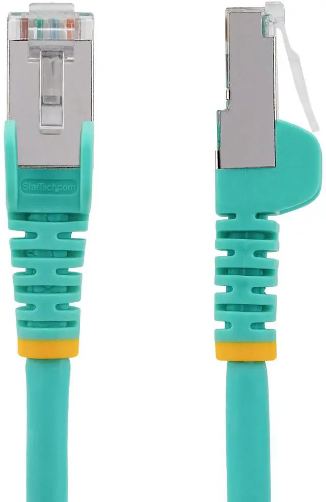StarTech 1ft CAT6a Ethernet Cable - Aqua - Low Smoke Zero Halogen (LSZH) - 10GbE 500MHz 100W PoE++ Snagless RJ-45 w/Strain Reliefs S/FTP Network Patch Cord Model NLAQ-1F-CAT6A-PATCH