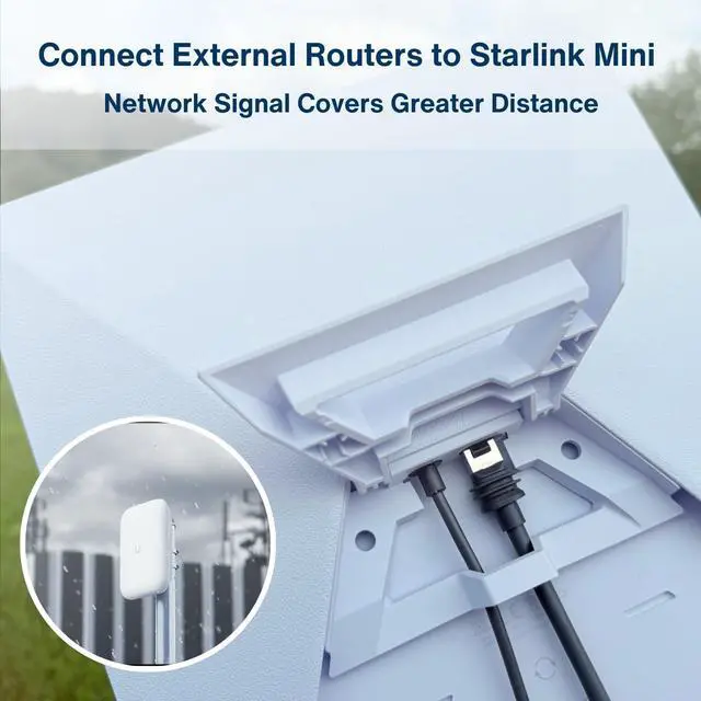• Compatible with Starlink Standard and Mini: This Ethernet cable works seamlessly as a replacement for Starlink Standard/Gen 3s original cable. It also provides an external connection option for Starlink Mini, allowing users to link high-performance routers for extended network range, especially useful in outdoor environments.