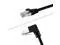 Ethernet cable provide a solution for connecting in narrow spaces behind furniture or in network closets. Connect the 90-degree upward or downward sloping end to the RJ45 port of the device or the network LAN port; use an angled Ethernet cable instead of excessively bending the straight jumper.