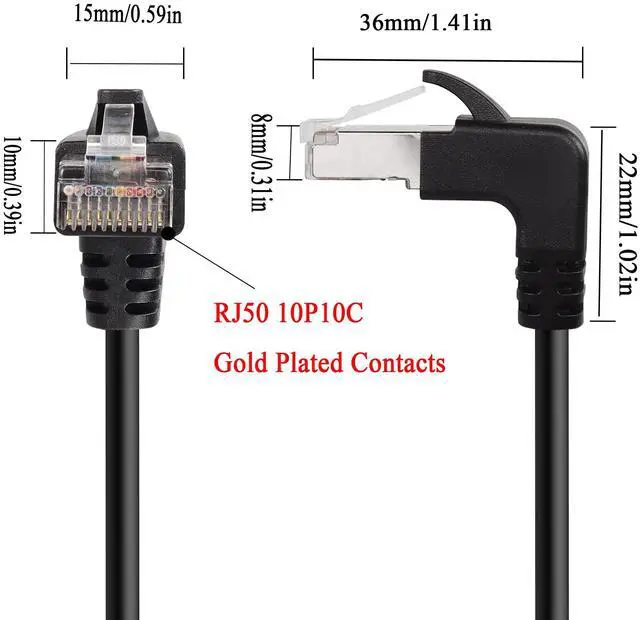RJ50 10P10C Right Angle Male to 90 Degree Angle Male Cable,For code scanners, laser scanning equipment, Digiboard connections, data transmission equipment, PC accessories, test equipment, industrial control equipment. Can also be used with Medusa Box/Octoplus Box for cell phone repair. The RJ50 connector has the same physical dimensions as RJ45, follows the RJ specification and is backward compatible with RJ45, making it easy to use elsewhere.