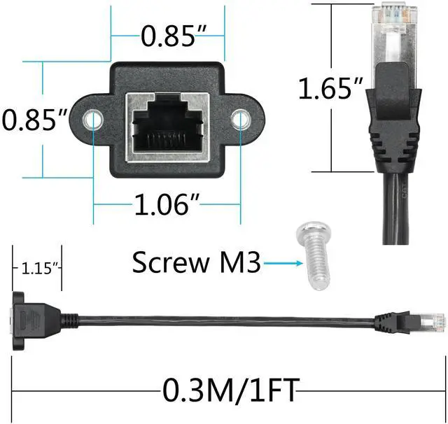 2Pcs Cat6 Ethernet RJ45 Male to Female Extension Cable
