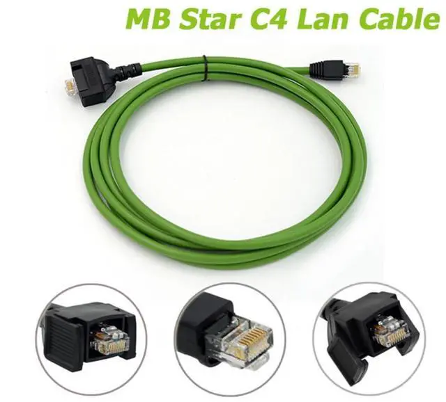 This specialized 9.84-foot (3-meter) network LAN cable is designed specifically for MB Star SD C4 C5 auto diagnostic tools, ensuring reliable connectivity during vehicle diagnostics. The cable features robust RJ45 connectors on both ends, with one connector having a protective housing for enhanced durability in workshop environments. The distinctive green cable jacket makes it easily identifiable among other cables and provides excellent flexibility for convenient routing. Built to handle high-speed data transmission requirements of modern diagnostic equipment, this cable enables technicians to perform accurate vehicle diagnostics and programming. The cable's length offers sufficient reach while working around vehicles, and its construction quality ensures consistent performance during critical diagnostic procedures. Perfect for professional automotive workshops and diagnostic centers where reliable connectivity is essential for precise vehicle analysis.