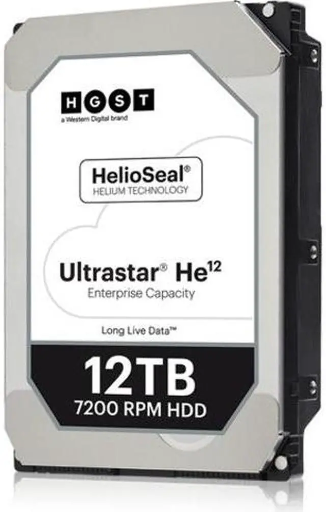 Laying the foundation for a worry-free data center, HGST delivers capacity to conquer the data explosion - Ultrastar® He12 HDD. Designed to handle workloads up to 550TB per year, the Ultrastar He12 HDD is the industrys first 12TB drive and uses PMR technology to make it drop-in ready for any enterprise-capacity application or environment. The stable internal environment created by fourth-generation HelioSeal® technology enables a new 8-disk design, increasing the capacity by 20% when compared to the 7-disk design of the prior generation. This highest capacity helium drive offers the lowest power profile in the industry to help data center architects meet eco-environmental goals and requirements. Targeted at 2.5M hours MTBF, the Ultrastar He12 HDD provides the highest reliability rating available of all HDDs on the market today by building on the successful design of its 10TB, 8TB and 6TB predecessors. Trust HGST and the Ultrastar He12 HDD to deliver more capacity, more efficiency, more reliability and more value to your data center.