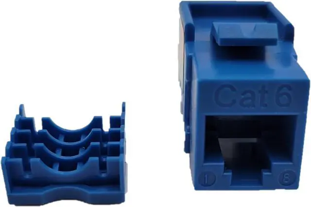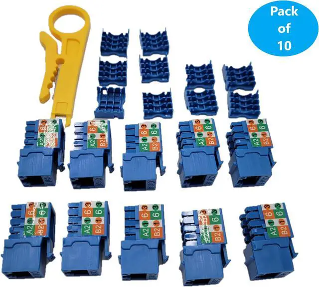 This CAT6 110 type punch down keystone jack provides excellent performance for any UTP high-speed network applications. Included in the package is a convenient mini wire stripper and punch down tool for your installation needs. For use with 22 to 24 AWG solid and stranded cable and works with standard wall plates, surface mount boxes and patch panels, this keystone jack is color-coded, labeled, and UL listed to meet all performance and standards compliance.