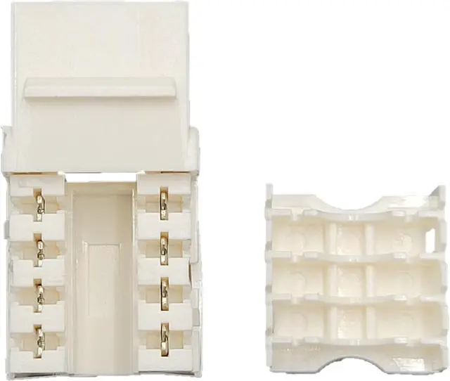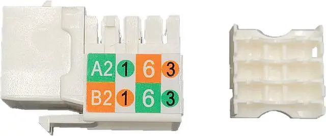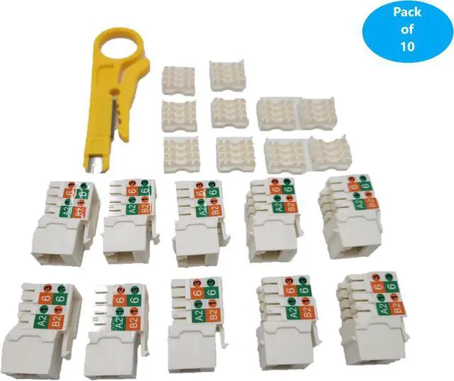 This CAT6 110 type punch down keystone jack provides excellent performance for any UTP high-speed network applications. Included in the package is a convenient mini wire stripper and punch down tool for your installation needs. For use with 22 to 24 AWG solid and stranded cable and works with standard wall plates, surface mount boxes and patch panels, this keystone jack is color-coded, labeled, and UL listed to meet all performance and standards compliance.