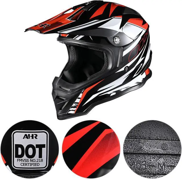 - Dynamic Design - This AHR Adult Offroad Helmet features a full face coverage with a cool and streamlined design, along with an ergonomic oval shape fitting perfectly on most head sizes, ideal for use by professional motorcyclists in motocross or dirt bike competitions or for use by motorcyclists for daily motorcycle or ATV rides