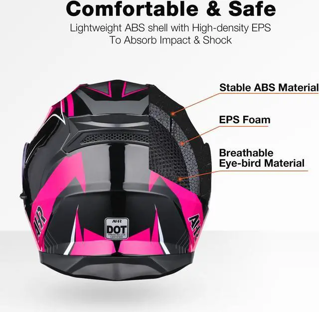 - Eye Catching & Sharp - AHR RUN-M3 Modular Flip Up Helmet features streamlined design with dynamic pattern, making you stand out among others; Flip up design for convenient phone talking or smoking; Suitable for motorcyclists to use in daily rides, ATV, motocross or dirt bike, etc