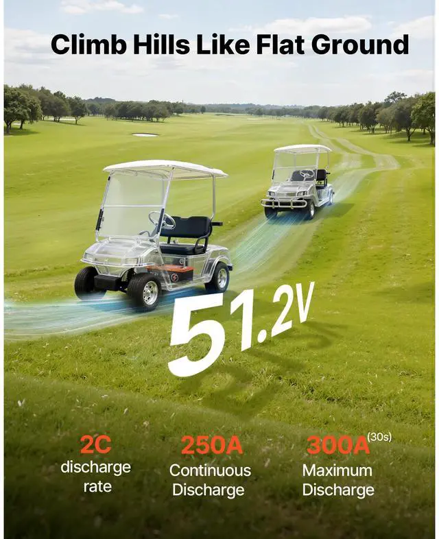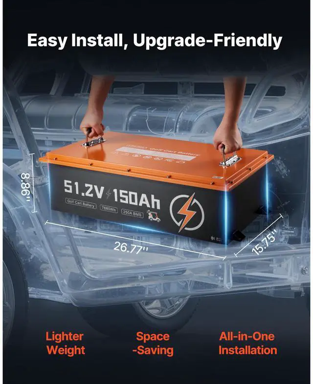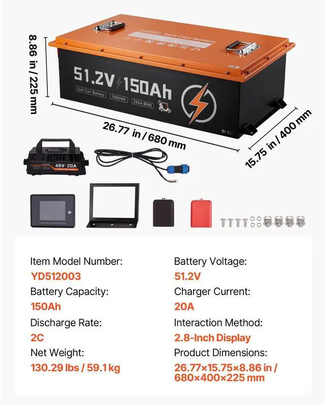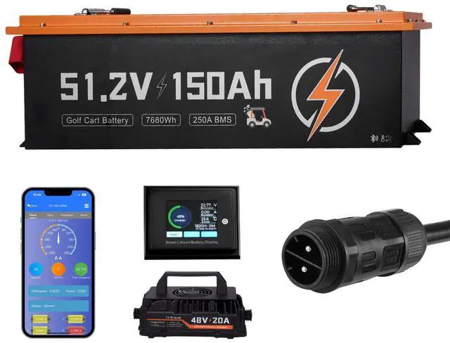 48V (51.2V) 150AH Lithium Golf Cart Battery, with 20A Charger, Lifepo4 Battery Kit, Built-in 250A BMS, with Bluetooth & Touch Monitor, 2C Discharge, 4000 Cycles, for Golf Carts, Trolling Motors