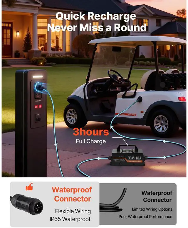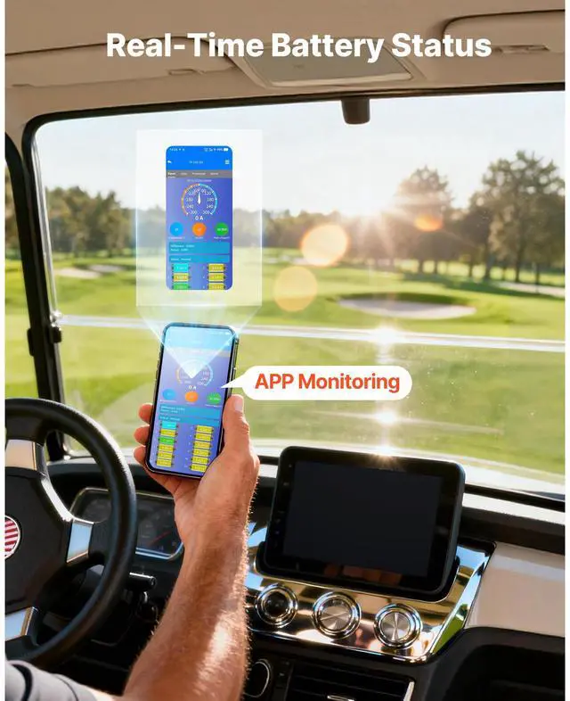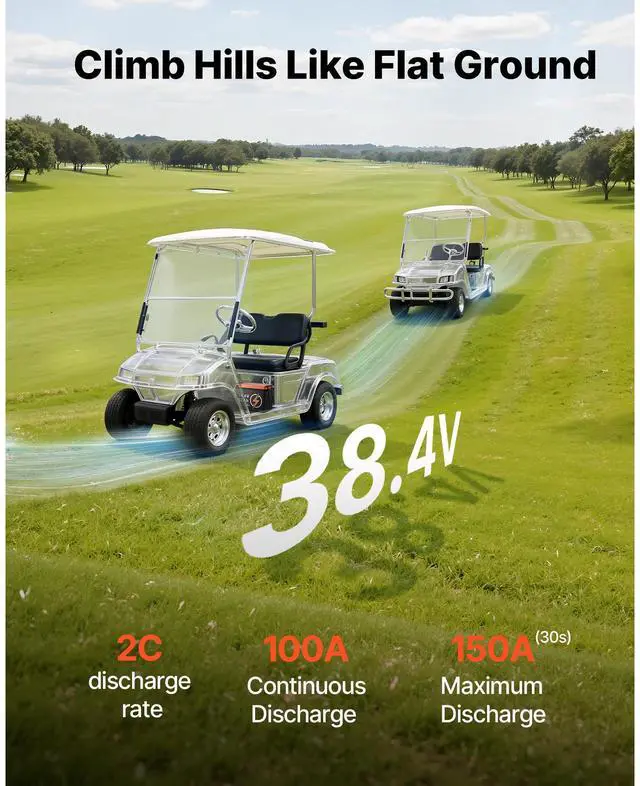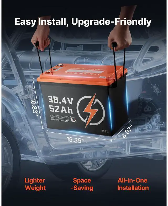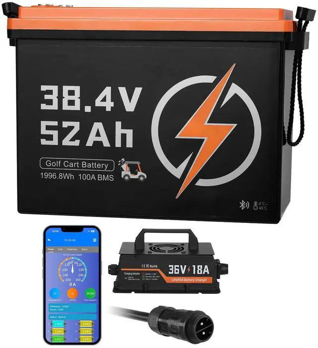 36V (38.4V) 52AH Lithium Golf Cart Battery, with 18A Charger, Lifepo4 Battery Kit, Built-in 100A BMS, 4000 Cycles, 2C Discharge Rate, Bluetooth & Mobile APP, for Golf Carts, Trolling Motors