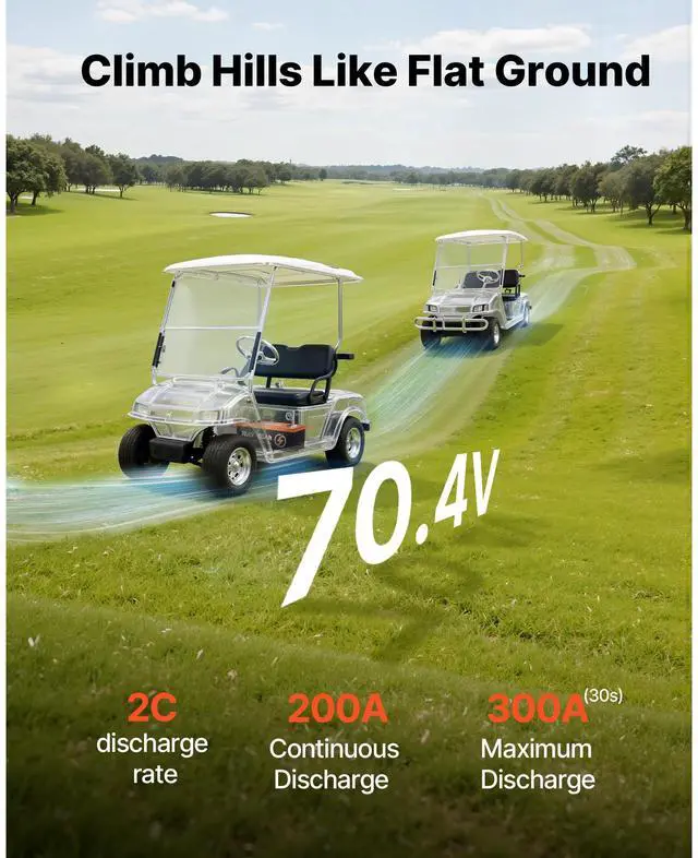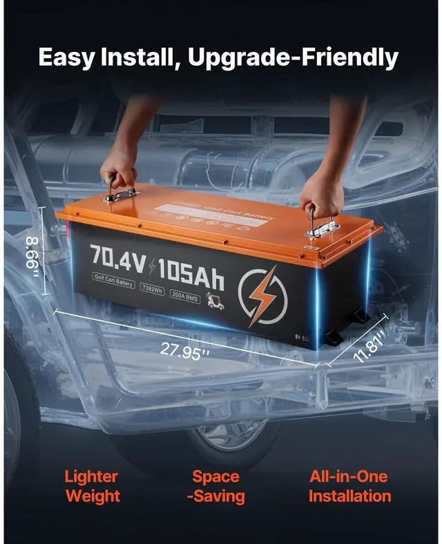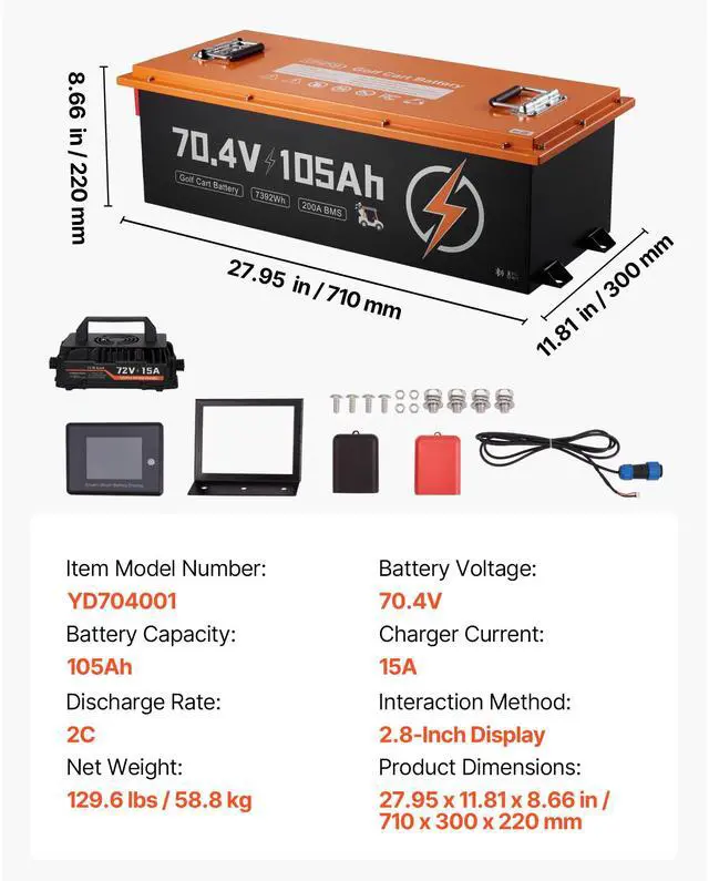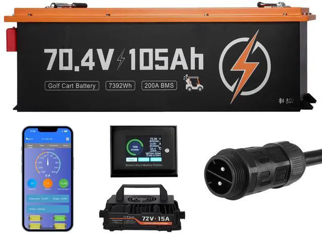 72V (70.4V) 105AH Lithium Golf Cart Battery, with 15A Charger, Lifepo4 Battery Kit, Built-in 200A BMS, with Bluetooth & Touch Monitor, 2C Discharge, 4000 Cycles, for Golf Carts, Trolling Motors