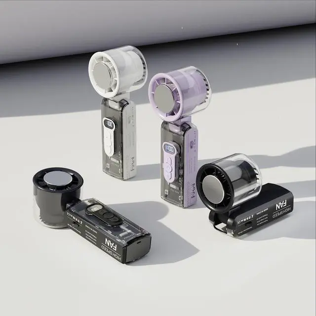 Appearance: fully transparent, Cyberpunk style. Function: foldable hand-held fan with cooling plate, LED light Fit: indoor, outdoor