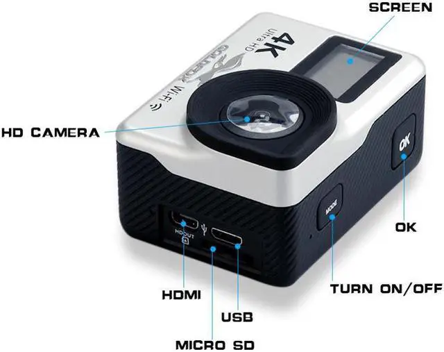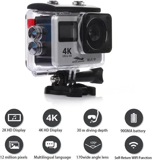 4K Mini Action Camera Support WIFI Touch Screen Dual Screen 12MP 30m Waterproof DV 170 Degree Wide Angle Lens Sports CameraFeature: