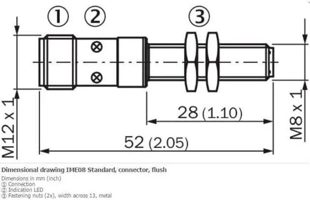 FEATURES Housing Cylindrical thread design Housing Standard Thread size M8 x 1 Diameter Ø 8 mm Sensing range Sn 1.5 mm Safe sensing range Sa 1.215 mm Installation type Flush Switching frequency + 4, 000 Hz Connection type Male connector M12, 4-pin Switching output PNP Output function NO Electrical wiring DC 3-wire Enclosure rating IP67 1) Special features Stainless steel housing MECHANICS/ELECTRONICS Supply voltage 10 V DC... 30 V DC Ripple = 10 % Voltage drop = 2 V 1) Current consumption 10 mA 2) Time delay before availability = 100 ms Hysteresis 5 %.