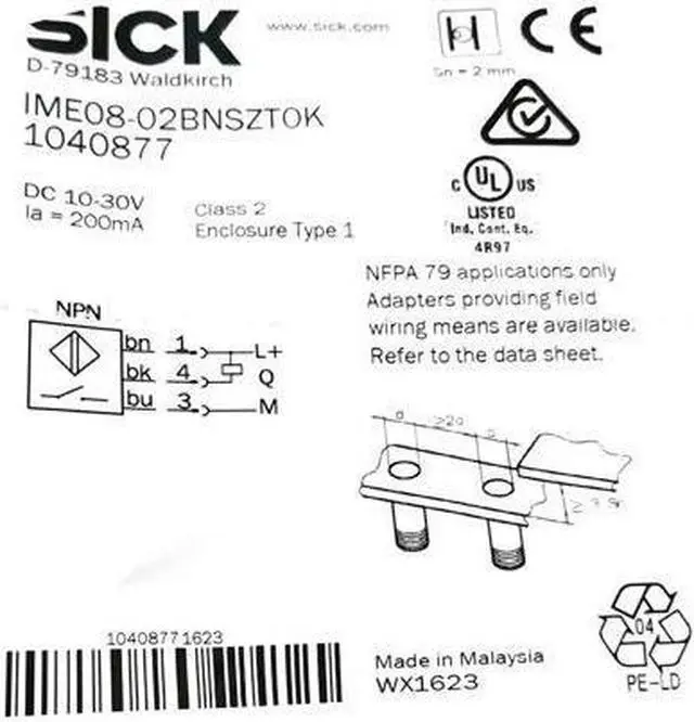 FEATURES Housing Cylindrical thread design Housing Short-body Thread size M8 x 1 Diameter Ø 8 mm Sensing range Sn 2 mm Safe sensing range Sa 1.62 mm Installation type Flush Switching frequency 4, 000 Hz Connection type Connector M8, 3-pin Switching output NPN Output function NO Electrical wiring DC 3-wire Enclosure rating IP67 1) MECHANICS/ELECTRONICS Supply voltage 10 V DC... 30 V DC Ripple = 10 % Voltage drop = 2 V 1) Current consumption 10 mA 2) Time delay before availability = 100 ms Hysteresis 5 %... 15 % Reproducibility = 2 % 3) 4) Temperature drift (of Sr) ± 10 % EMC According to EN 60947-5-2 Continuous current Ia = 200 mA Short-circuit protection? Reverse polarity protection? Power-up pulse protection? Shock and vibration resistance 30 g, 11 ms/10 Hz.