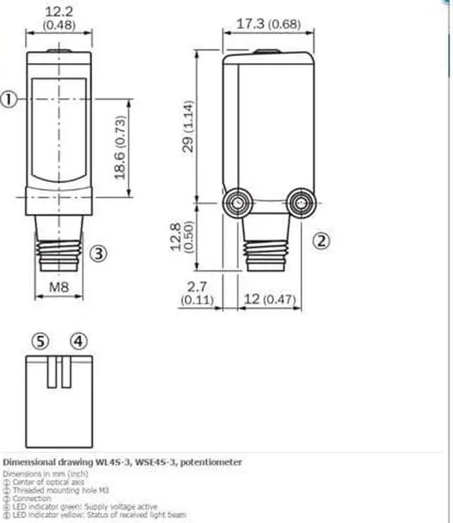 = 100 mA Response time < 0.5 ms 4) Switching frequency 1, 000 Hz 5) Connection type Cable with connector M8, 3-pin, 100 mm 6) Cable material PVC Conductor cross-section 0.14 mm² Cable diameter Ø 3.4 mm Circuit protection A 7) C 8) D 9) Protection class III Weight 30 g Polarisation filter? Housing material Plastic, ABS Optics material Plastic, PMMA Enclosure rating IP67 IP66 Ambient operating temperature –40 °C... +60 °C Ambient storage temperature –40 °C... +75 °C UL File No. NRKH. E181493 & NRKH7.