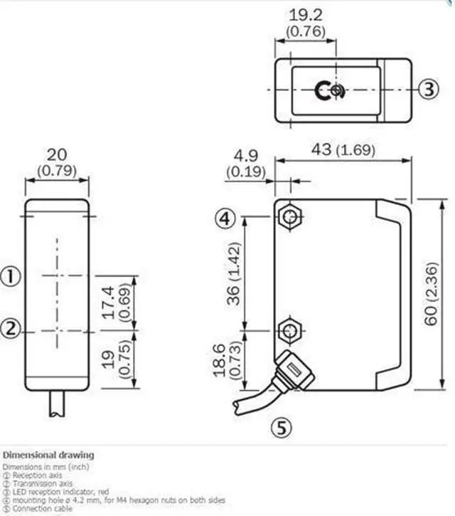 FEATURES Sensor/ detection principle Photoelectric retro-reflective sensor Dimensions (W x H x D) 20 mm x 60 mm x 43 mm Housing design (light emission) Rectangular Sensing range max. 0.01 m... 13.5 m 1) Sensing range 0.01 m... 8 m 2) 0.01 m... 11 m 1) Type of light Visible red light Light source LED 3) Light spot size (distance) Ø 400 mm (8 m) Angle of dispersion 2.5 ° Adjustment Potentiometer, 2 turns 4) MECHANICS/ELECTRONICS Supply voltage 12 V DC... 240 V DC 1) 24 V AC/DC... 240 V AC/DC 1) Power consumption = 2 VA Switching output Relay, electrically isolated 2) Output function Change-over contacts Switching mode Light switching 2) Switching current (switching voltage) 3 A (240 V AC) 3 A (30 V DC) Response time = 15 ms Switching frequency 33 Hz 3) Connection type Cable, 5-wire, 2 m 4) Cable material PVC Conductor cross-section 0.76 mm² Cable diameter Ø 6.3 mm Circuit protection A 5) C 6) Protection class II 7) Weight 160 g Polarisation filter? Housing material Plastic, ABS Optics material Plastic, PMMA Enclosure rating IP67 Items supplied Reflector P250, BEF-W250 mounting bracket Usage category AC-15, DC-13, according to EN 60947-1 Ambient operating temperature –25 °C.