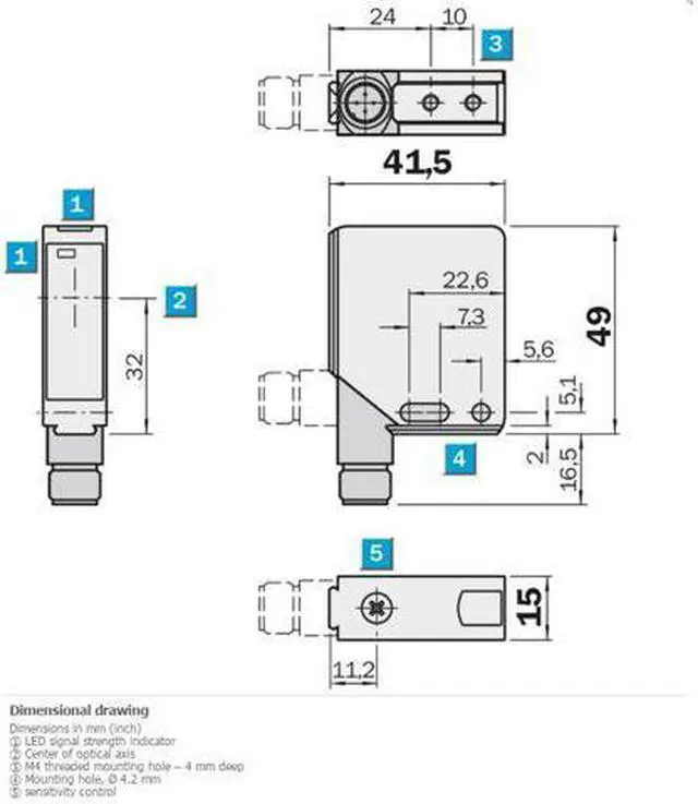 FEATURES Sensor/ detection principle Photoelectric retro-reflective sensor Dimensions (W x H x D) 15 mm x 49 mm x 41.5 mm Housing design (light emission) Rectangular Sensing range max. 0 m... 7 m 1) Sensing range 0 m... 5 m 1) Type of light Visible red light Light source LED Adjustment Potentiometer MECHANICS/ELECTRONICS Supply voltage 10 V DC... 30 V DC Ripple = 5 Vpp Power consumption = 30 mA 1) Switching output PNP Switching mode Light/dark switching Response time = 330 µs 2) Connection type Male connector M12, 4-pin Housing material Metal, Zinc diecast Optics material Plastic, PMMA Enclosure rating IP67 Ambient operating temperature –40 °C.
