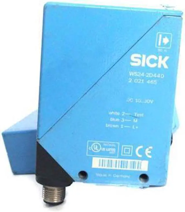 100 mA Response time = 500 µs 4) Switching frequency 1, 000 Hz 5) Angle of reception Approx. 2.5 ° Connection type Male connector M12, 4-pin Circuit protection A 6) C 7) D 8) Protection class II 9) Weight 660 g Housing material Metal, Zinc diecast Optics material Plastic, PMMA Enclosure rating IP69K Test input sender off TE to 0 V Ambient operating temperature –40 °C... +60 °C Ambient storage temperature –40 °C... +75 °C UL File No. NRKH. E181493 & NRKH7. E181493 Part number of individual components 2021144 WS24-2D430 2021145 WE24-2B430