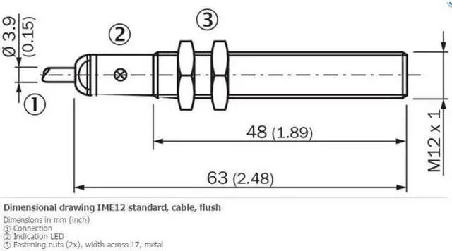 .. 55 Hz, 1 mm Ambient operating temperature –25 °C... +75 °C Housing material Metal, Nickel-plated brass Sensing face material Plastic, PA 66 Housing length 63 mm Thread length 48 mm Tightening torque, max. = 12 Nm UL File No. NRKH. E181493