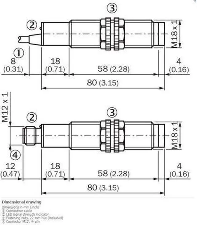 300 mA 3) Response time = 20 ms 4) Switching frequency 25 Hz 5) Connection type Cable, 3-wire, 2 m 6) Cable material PVC Conductor cross-section 0.34 mm² Cable diameter Ø 4.7 mm Circuit protection C 7) Protection class III Weight 95 g Housing material Plastic, PBT/PC Optics material Plastic, PMMA Enclosure rating IP67 Ambient operating temperature –25 °C... +60 °C UL File No. NMFT2. E175606