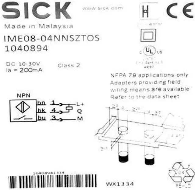 FEATURES Housing Cylindrical thread design Housing Standard Thread size M8 x 1 Diameter Ø 8 mm Sensing range Sn 4 mm Safe sensing range Sa 3.24 mm Installation type Non-flush Switching frequency 4, 000 Hz Connection type Connector M8, 3-pin Switching output NPN Output function NO Electrical wiring DC 3-wire Enclosure rating IP67 1) MECHANICS/ELECTRONICS Supply voltage 10 V DC... 30 V DC Ripple = 10 % Voltage drop = 2 V 1) Current consumption 10 mA 2) Time delay before availability = 100 ms Hysteresis 5 %... 15 % Reproducibility = 2 % 3) 4) Temperature drift (of Sr) ± 10 % EMC According to EN 60947-5-2 Continuous current Ia = 200 mA Short-circuit protection? Reverse polarity protection? Power-up pulse protection? Shock and vibration resistance 30 g, 11 ms/10 Hz.