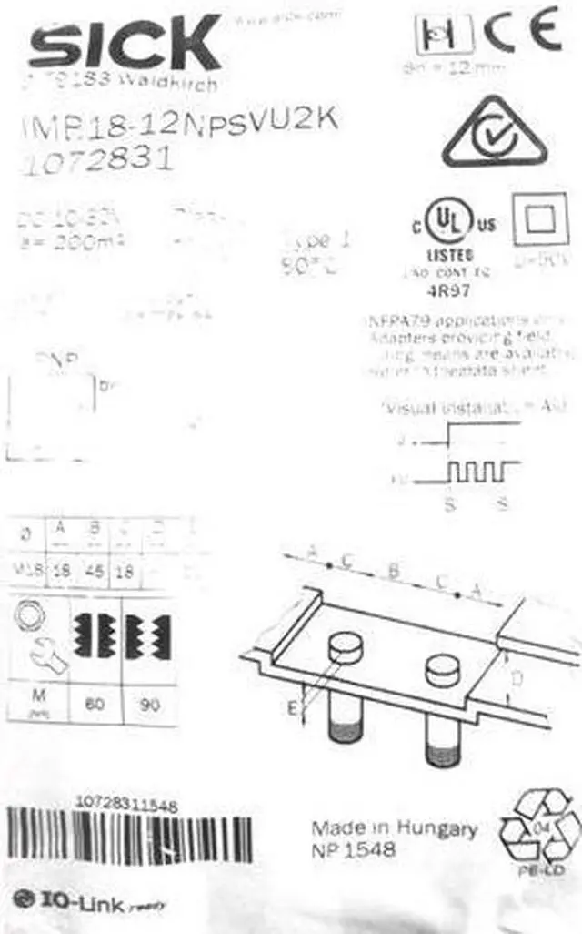 • SICK IMB18-12NPSVU2K Inductive Proximity Sensors,PNP,New