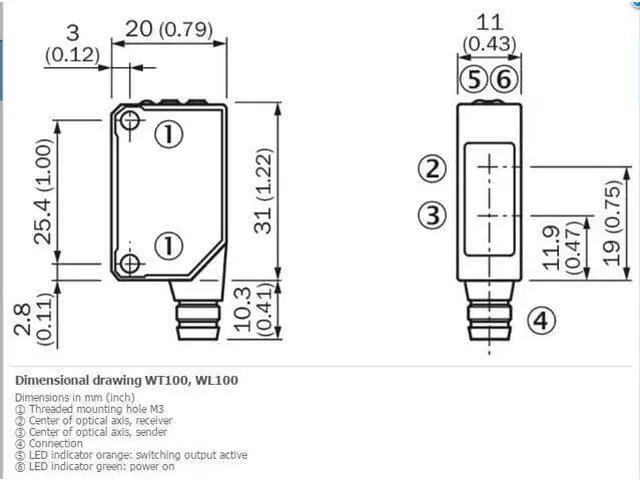 FEATURES Sensor/ detection principle Photoelectric retro-reflective sensor, Dual lens Dimensions (W x H x D) 11 mm x 31 mm x 20 mm Housing design (light emission) Rectangular Sensing range max. 0.1 m... 7.5 m 1) Sensing range 0.1 m... 6 m 1) Type of light Visible red light Light source LED 2) Light spot size (distance) Ø 150 mm (4 m) Angle of dispersion Approx. 2° Wave length 645 nm Adjustment Potentiometer, 270° MECHANICS/ELECTRONICS Supply voltage 10 V DC... 30 V DC 1) Ripple ± 10 % 2) Power consumption 30 mA 3) Switching output NPN Switching mode Light/dark switching Switching mode selector Selectable via light/dark rotary switch Signal voltage NPN HIGH/LOW Approx.
