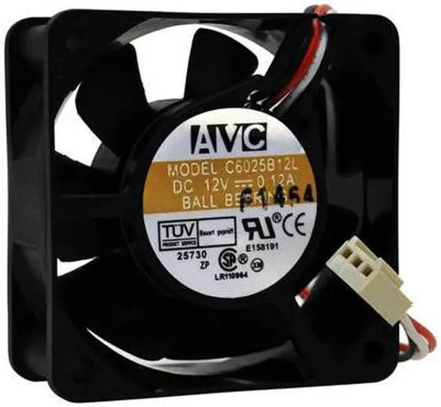 AVC C6025B12LGateway P/N: 8005969, 8006265, 8004934Dimensions: 60x60x25 MMVoltage: DC 12VCurrent: 0.12ASpeed: 3500 RPMBearing: BallFeature: Speed Sensor (Tach)Mounting Style: Rib TypeTermination: 3-Pin / 3-Wire / 6-Inch