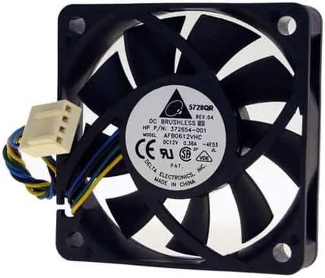 Delta AFB0612VHCDimensions: 60x60x13 MM Voltage: DC 12V Current: Max. 0.36AMax Speed: 5400 RPM Max Air Flow: 27.72 CFM Max Air Pressure: 0.251 In H2O Noise: 38 dBA Connector: 4-Pin / 4-wire / 3.5-Inch