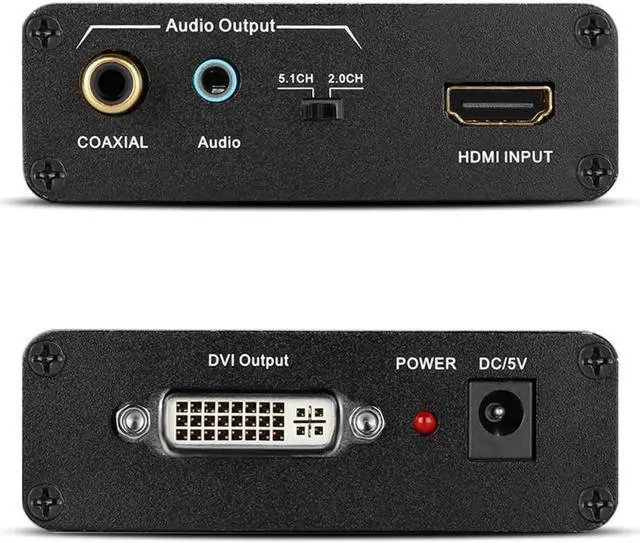 Convert 1080p HDMI in high definition video and audio signal to DVI and Coaxial ( 5.1 channel)/ 3.5 mm / RCA (stereo audio) by providing the interface to connect any modern device with DVI monitor display & analog audio equipment