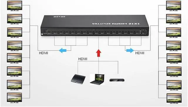 One HDMI 1.4 input signal split to 16 HDMI 1.4 sink devices