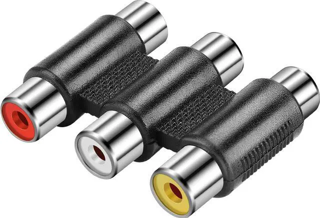 3 RCA Female Jack to 3 RCA Female Jack Coupler Nickel Plated 3 RCA Straight Adapter Audio Video RCA Cable Extension Extender Interconnect RCA Connector Converter Joiner for RCA Cable, Amplifier, Speaker, CD Player, TVs, Game Console and other device with RCA interface. RCA female to female adapter is used to connect two stereo audio cables with RCA type connectors to extend the length and maintain a high quality connection and stable signal.