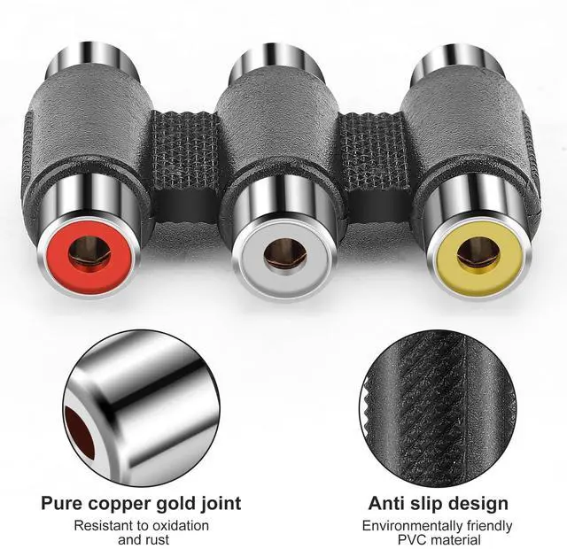 High Quality: 3 RCA female jack is made of PVC and zinc alloy, wear resistant and durable. Compact and lightweight design is easy to carry and store and prevents cable tangling. Nickel-plated connectors provide better conductivity, good contact and can withstand more than 10,000 times of plug tests.