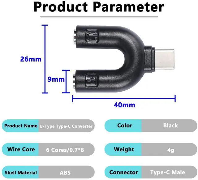 Product Name: USB Type-C to Headphone and Microphone Splitter Adapter