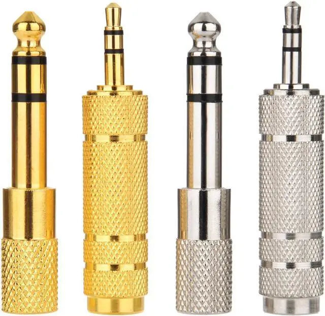 Headphone adapter set: 2 types of adapters are included 6.35 mm (1/ 4 inch) male to 3.5 mm (1/ 8 inch) female and 3.5 mm (1/ 8 inch) male to 6.35 mm (1/ 4 inch) femaleDurable material: these audio stereo plugs are made of metal durable and anti-rust resists corrosion ensures minimal signal lossSpecial design: 360 degree grip treads help easy plugging and unplugging do not need to distinguish the positive and negative side convenient to useStereo adapter application: allows your headphones or other devices to be compatible with most pro audio and home audio equipments with 6.35 mm socketQuantity: 4 pieces of headphone adapters in total in 2 types each type has 2 pieces one is golden and another is in silver color