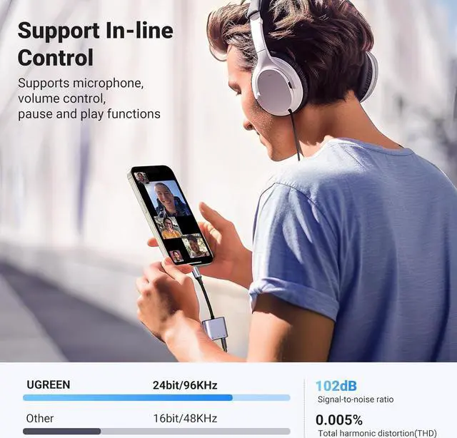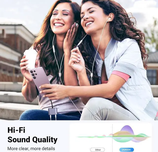 3 in 1 Share Audio While ChargingUGREEN USB C to 3.5 mm audio adapter allows you to share music or watch movies with your family and friends while fast charging your device. There are dual 3.5 mm headphone jacks and a USB-C port. Hi-Fi audio and PD 60W fast charging are provided with the USB C headphone adapter. You can fully immerse yourself in the audio world without worrying about your phone's battery dying.