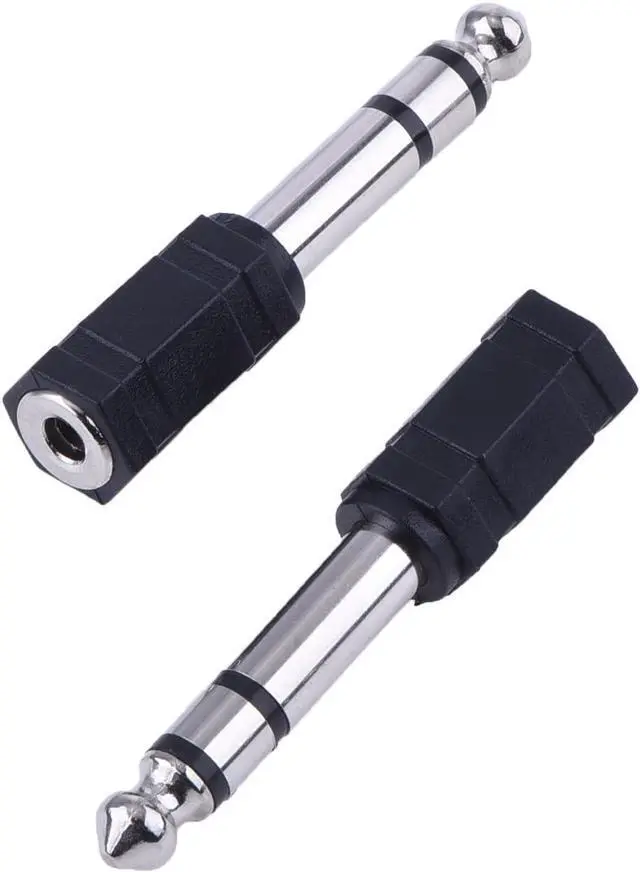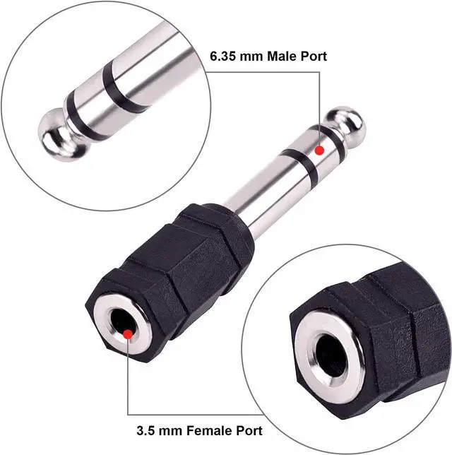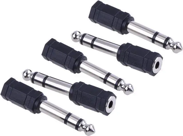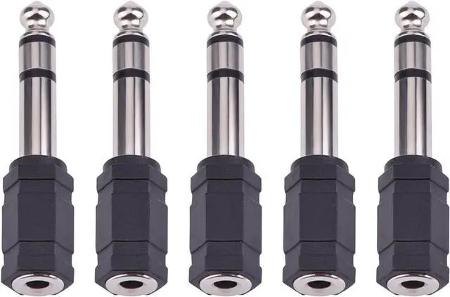 Headphone adapter set: 6.35 mm (1/ 4 inch) audio stereo plug to 3.5 mm (1/ 8 inch) stereo headphone jack adapter come with 5 pieces and with black colorWide application: earphone adapter can be applied to mixers and music applications fit for use with guitar amps stereo system headphones etc.