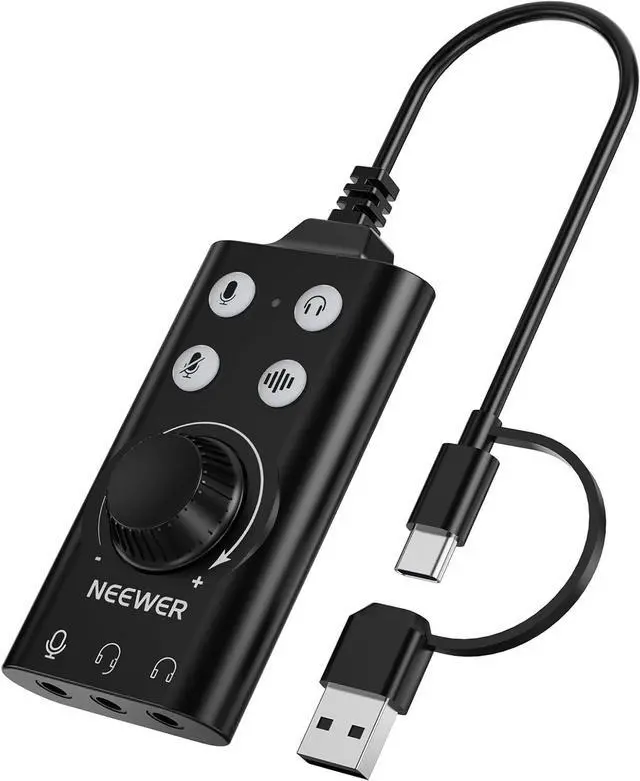 PP07 USB C & USB A to 3.5 mm External Sound Card, Portable Audio Adapter Accessories with Mute/Noise Cancellation/Volume & Gain Adjustment, Compatible with Mac Windows PC Phone PS4 PS5