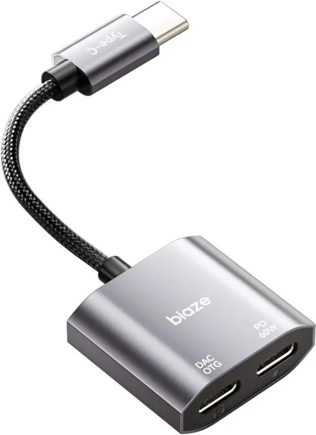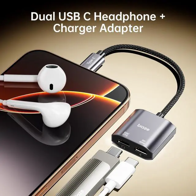 USB-C Male to Dual USB-C Female AdapterThis USB-C to dual USB-C female data cable is equipped with one headphone port and one charging port, allowing you to listen to music with headphones and fast charge your device at the same time