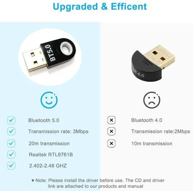 USB BT 5.0 Transmitter Receiver AUX Audio Adapter for TV/PC/Car