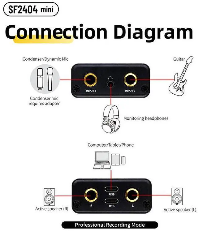 The SF2404mini Portable Sound Card packs multiple functions into onecompact device.Compatible with both Mobile and PC, with simpleone-touch controls for instant access.